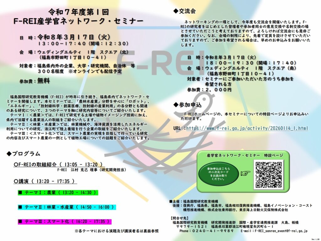 令和7年度 第1回 F-REI産学官ネットワーク・セミナーの開催について|ニュース&イベント|福島国際研究教育機構 (F-REI)